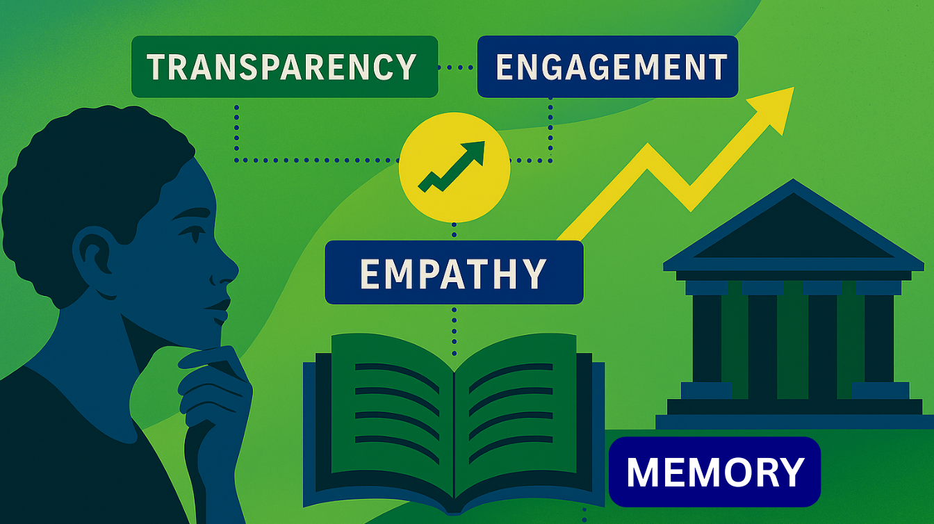 AI can output “content.” But transparency requires judgment—naming tradeoffs, situating histories, revealing priorities—which is what only human storytellers can do.